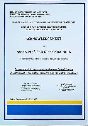 Участь у 11-й Міжнародній міждисциплінарній науковій конференції “Social Development Towards Values: Ethics – Technology – Society”, організованій Факультетом організації та менеджменту Сілезького технологічного університету (Польща, м. Вісла, вересень 2025).