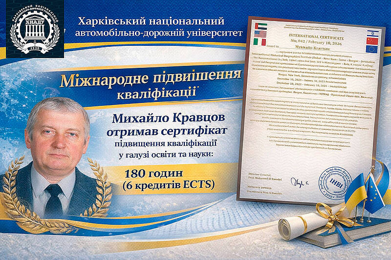 Доцент кафедри метрології та безпеки життєдіяльності Кравцов М.М. отримав Міжнародний сертифікат підвищення кваліфікації у межах міжнародної програми професійного розвитку.