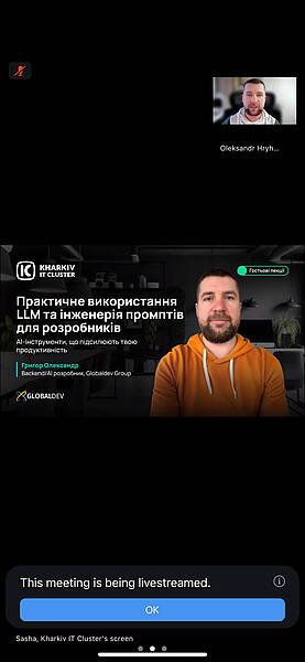 Участь у такому заході дозволила студентам кафедри КНіІС отримати актуальні знання про сучасні технології штучного інтелекту. Зустріч з практикуючим фахівцем галузі надала можливість дізнатися про реальні виклики та рішення при роботі з великими мовними моделями у комерційних проєктах.