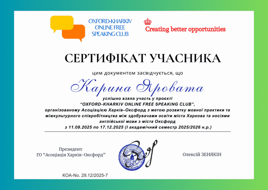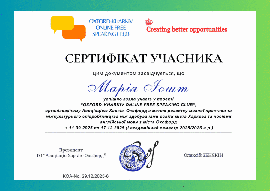 У межах програми реалізуються партнерські проєкти з Університетом Оснабрюк (Німеччина) та ГО «Асоціація Харків–Оксфорд», проводяться Speaking Club з носіями мови, міжнародні семінари та тренінги. Студенти отримують міжнародні сертифікати, що підтверджують їхню міжкультурну компетентність та участь у програмах академічної мобільності.
