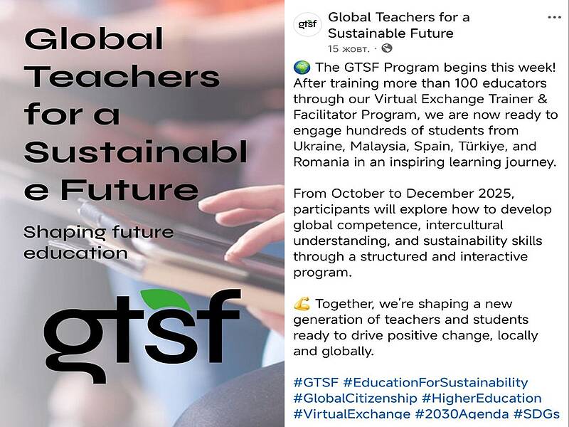 Проект «Глобальні викладачі за сталий розвиток» (GTSF) має на меті створення інноваційних, науково обґрунтованих практик викладання та навчання у закладах вищої освіти.