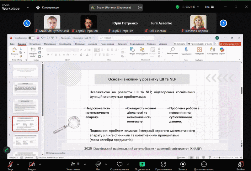 Особлива увага приділялась проблемам розвитку штучного інтелекту та природної обробки мови (NLP), зокрема недосконалості математичного апарату, складності мовної діяльності та роботі з неповними даними. Також обговорювались питання недоліків міського центру керування дорожнім рухом, включно з нерівномірним покриттям інфраструктури та залежністю від якості даних.