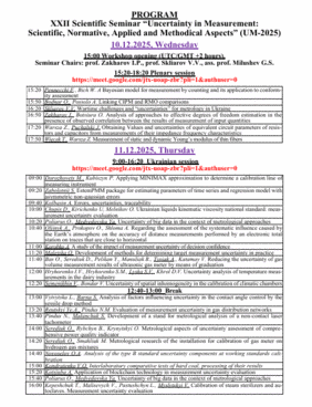На семінарі було представлено 52 доповіді авторів з 5 країн: Болгарії, Італії, Польщі, України, США. Він включає роботи, що охоплюють широкий спектр тем: розробка теоретичних основ модельних та емпіричних підходів до оцінки невизначеності вимірювань; обробка результатів та оцінка невизначеностей вимірювань при випробуваннях, калібруваннях, перевірках; валідація методів випробувань та калібрування; автоматизація процесу обробки результатів та оцінки невизначеності вимірювань; вдосконалення нормативної бази для оцінки невизначеності вимірювань; організація та проведення міжлабораторних порівняльних випробувань та обробка їх результатів; особливості навчання з оцінки невизначеності вимірювань. Матеріали семінару є цінним ресурсом для викладачів, співробітників випробувальних та калібрувальних лабораторій, аспірантів, які прагнуть розширити свої знання та зробити внесок у розвиток оцінювання невизначеності вимірювань.