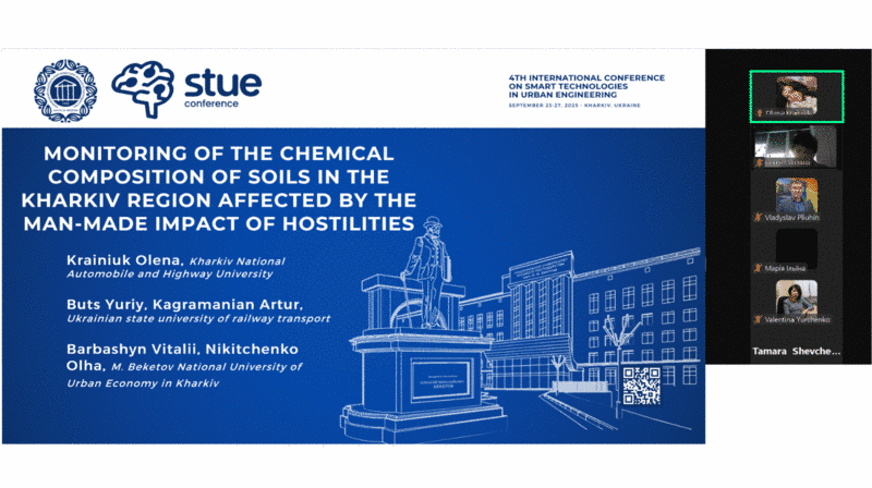 Завідувачка кафедри Олена Крайнюк виступила з доповіддю «Monitoring of the Chemical Composition of Soils in the Kharkiv Region Affected by the Man-made Impact of Hostilities», у якій продемонстровано інтеграцію смарт-технологій для екологічного моніторингу. У дослідженні поєднано нейромережевий аналіз супутникових знімків, алгоритми обробки даних на Python та лабораторні вимірювання, що дозволило створити просторову модель забруднення і систему інтелектуального моніторингу ґрунтів у режимі реального часу. Такий підхід відкриває нові можливості для швидкого виявлення зон екологічного ризику та планування відновлення постраждалих територій.