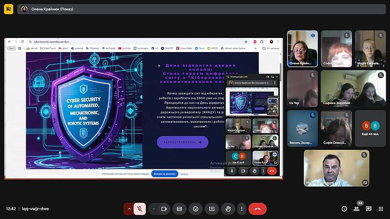 30 січня відбувся черговий змістовний та динамічний День відкритих дверей. Цього разу онлайн-зустріч була організована для учнів Черкаської гімназії. Понад 30 гостей зустрічали представники університету — М. М. Піксасов та О. В. Крайнюк, які активно залучають молодь до світу кібербезпеки, інформаційних технологій та автоматизованих систем.