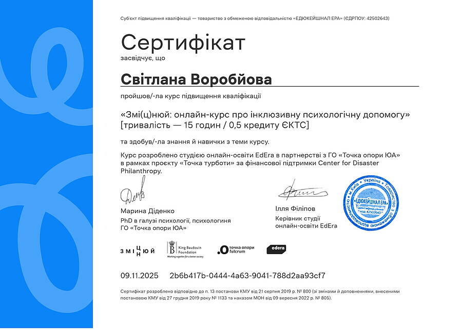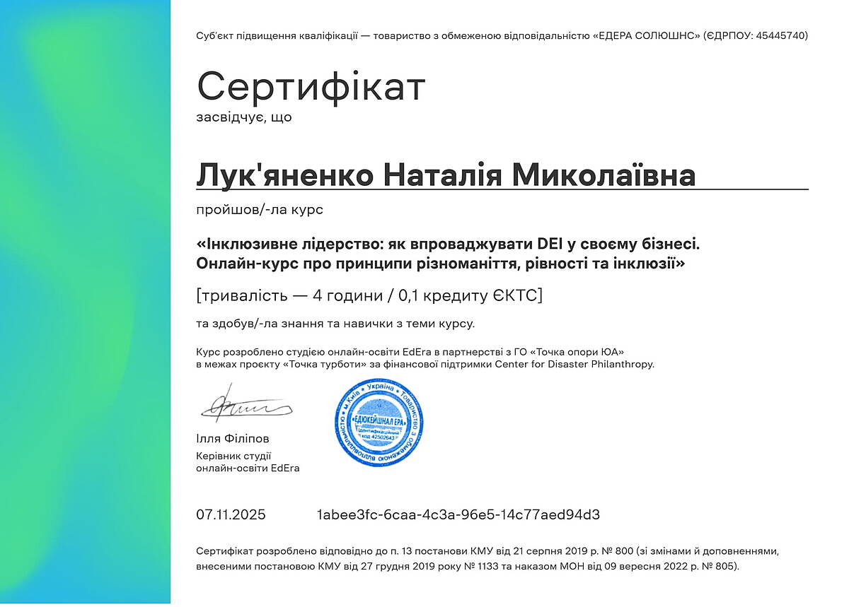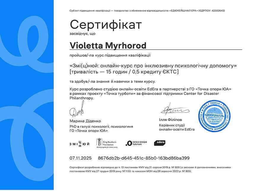 Викладачі кафедри постійно вдосконалюють свою професійну майстерність, проходячи підвищення кваліфікації. Це сприяє впровадженню сучасних підходів до навчання, розвитку інклюзивного мислення та створенню відкритого освітнього простору, комфортного для всіх учасників навчального процесу.